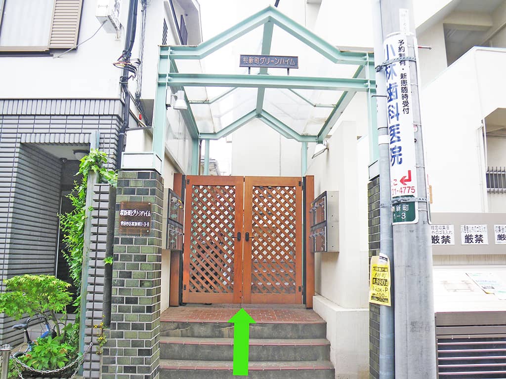階段を上がって2階203号室のチャイムでお呼び出しください。